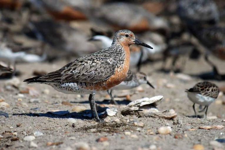 The red knot bird nests in the high Arctic and winters around the globe. Red knots are found on six continents and can travel up to six days and nights non-stop. Some of these little flyers migrate over 18,000 miles per year. The red knot is unparalleled as an international endurance athlete.